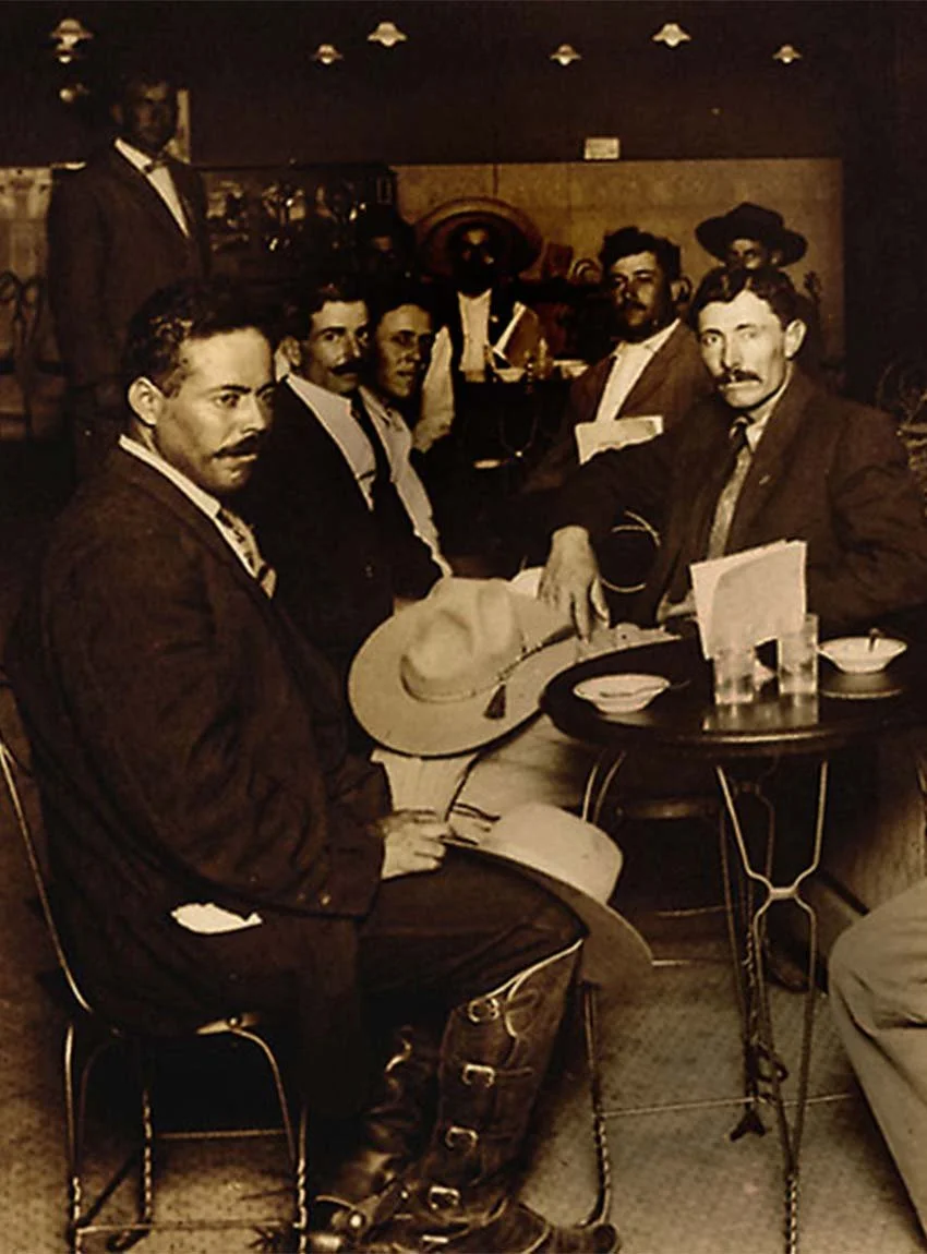 Villa, left, in 1911, with Pascual Orozco (leader of the orozquistas faction) in El Paso, Texas, at Elite Confectionary. Villa loved Elite’s ice cream and “could eat a pound of their peanut brittle.” Otis Aultman